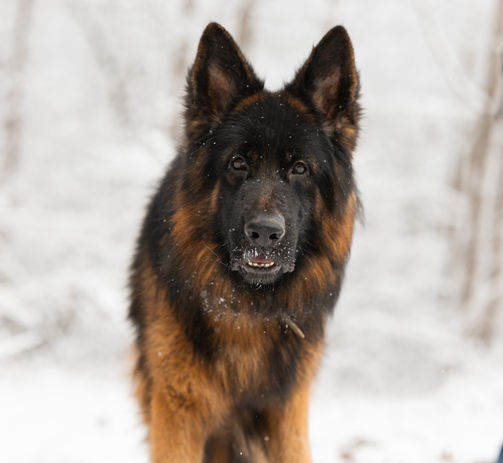 Overall, Fuego is an impressive example of the German Shepherd breed, and we are incredibly thrilled to have a boy like him in our program. He produces marvelous, big, black long coat pups. Our most popular color and coat on our program!